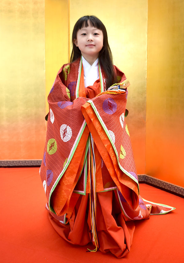 西条藩松平家の雛飾りは、西条藩9代藩主松平頼学のもとに京都の公家一条家から輿入れした通子(ゆきこ)が持参したもの。通子の雛人形は、公家の装束を考証してつくった有職雛(ゆうそくびな)で、公家出身の通子にふさわしいものといえます。